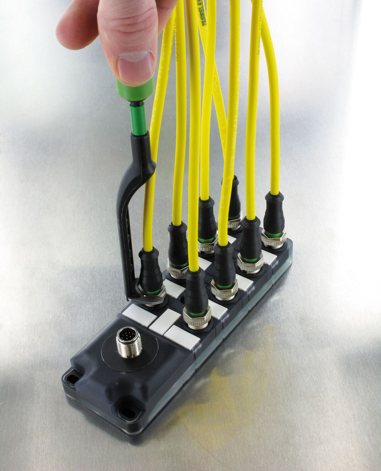 Murrelektronik独自に開発したトルクレンチで、コネクタを正確な角度に簡単に締めることができます。方法はカチッと音がするまでレンチを回すだけ。保護等級IP67の安定した接続品質が保たれます。トルクレンチは6つのサイズラインナップ、M8、M8 F&B、M12、M12 F&B、M23および7/8''からお選びいただけ、Murrelektronikが提供する同サイズの全コネクタに対応しています。